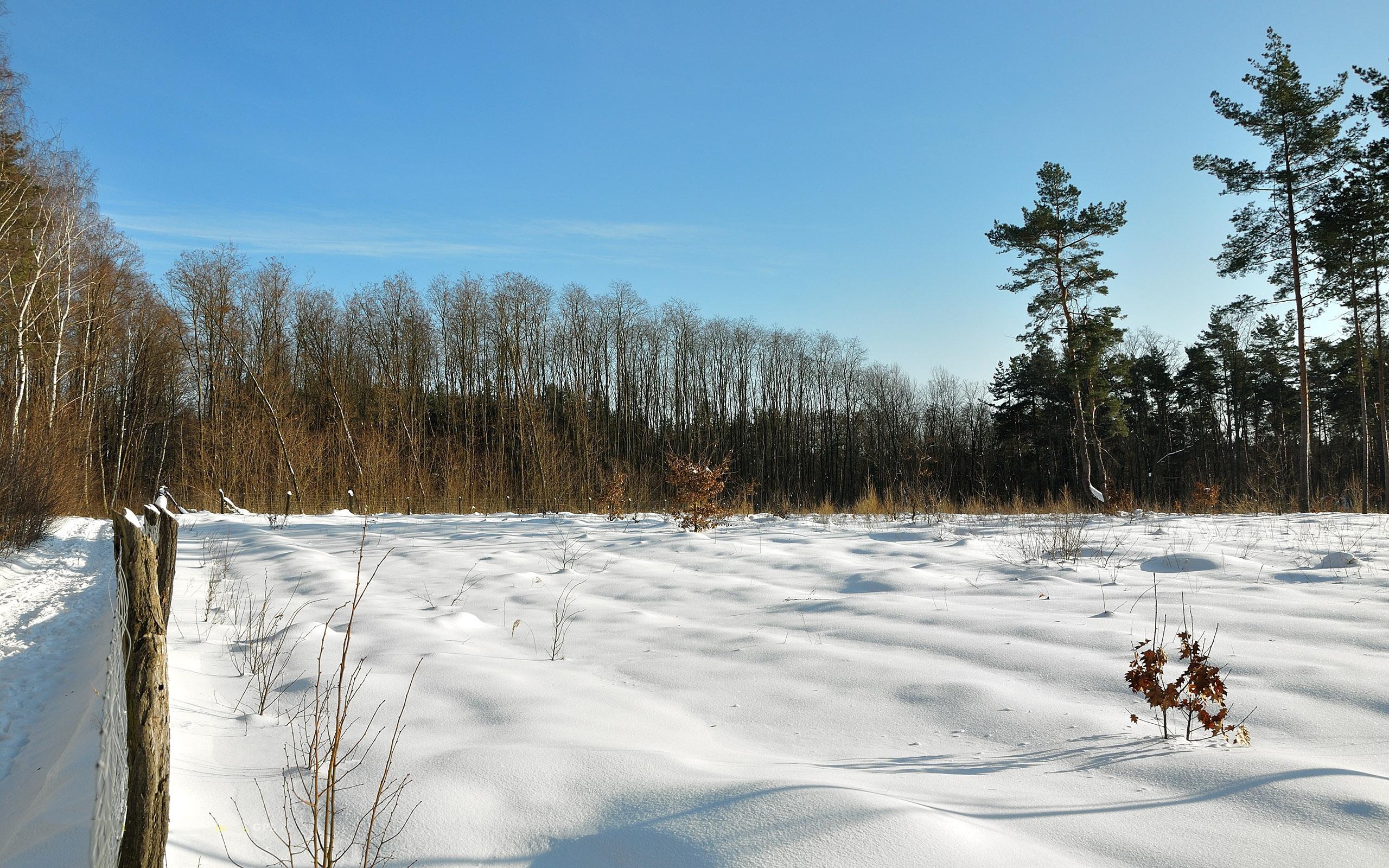 Azure, Blades, Clearly, Field, Protection, Shadows, Sky, Snow, Trees, Winter Wallpaper